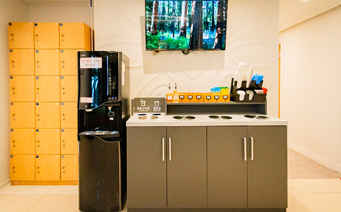 - 다수의 인원이 이용 가능한 대용량 냉온수 얼음 정수기가 있어 편리합니다.