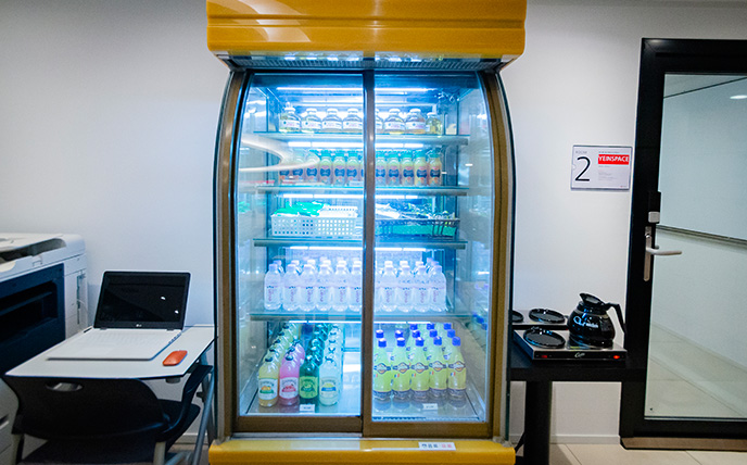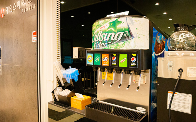 - 쇼케이스에서는 취향에 따라 판매하는 간식과 음료들이 있습니다.